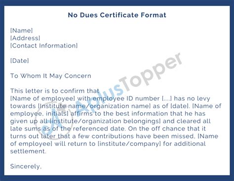 No Dues Certificate For - This is to certify that mr./ms. [employee's full name], employee id: As of the date of this certificate, there are no outstanding dues, payments, or liabilities pending against them. No dues (no claim) letter from an employee to employer. No dues certificate for [customer name] this is to certify that [customer name], having [customer id/account number], has cleared all.